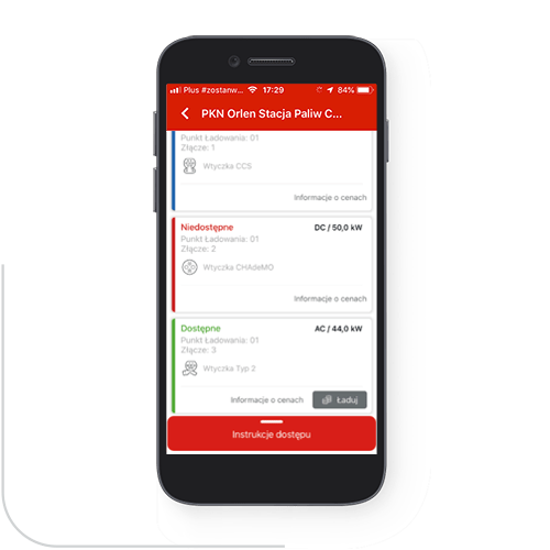 Za pomocą filtrów znajdź stację ładowania odpowiednią dla Twojego samochodu. Stację ładowania możesz wyszukać także korzystając z mapy.